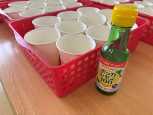 皆で順番に混ぜて、小さい紙コップに入れればあとは蒸すだけ!