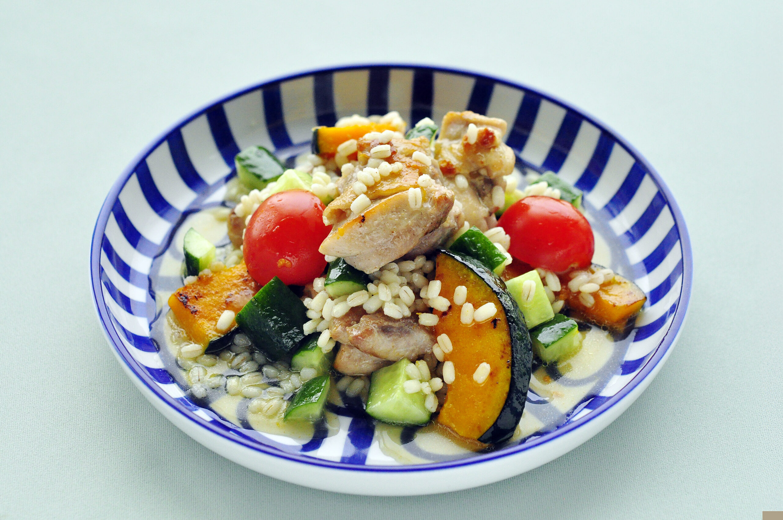 鶏とかぼちゃのソテー もち麦マリネ