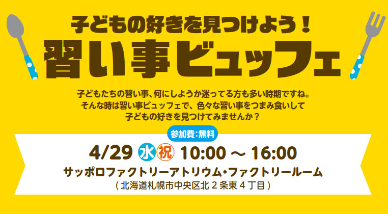 習い事ビュッフェは、すべて参加費無料!!レッスン時間や対象年齢は、ブースにより異なりますので、以下より詳細をご確認ください。
