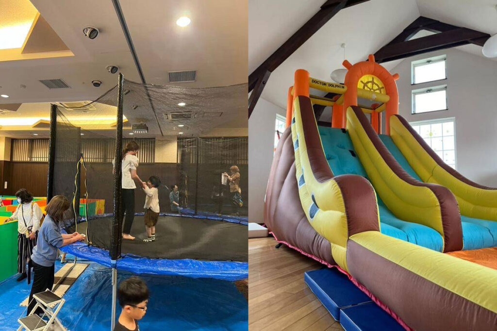 子どもたちが思いっきり遊べる、大型トランポリン、エアー滑り台、サイバーホイールがアトリウムに登場します!家ではできない遊びを思いっきり楽しもう!