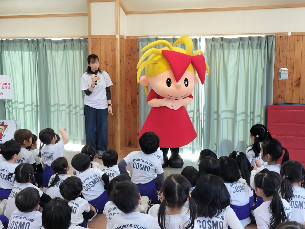 連日の寒さが少し和らいだ本日は、北海道のおさかなキャラクターと一緒に本郷幼稚園へ遊びにいきました。 園内には、とても可愛いお知らせが貼ってありました!ありがとうございます♡ みんな楽しみにしてくれているかな?私たちもみん