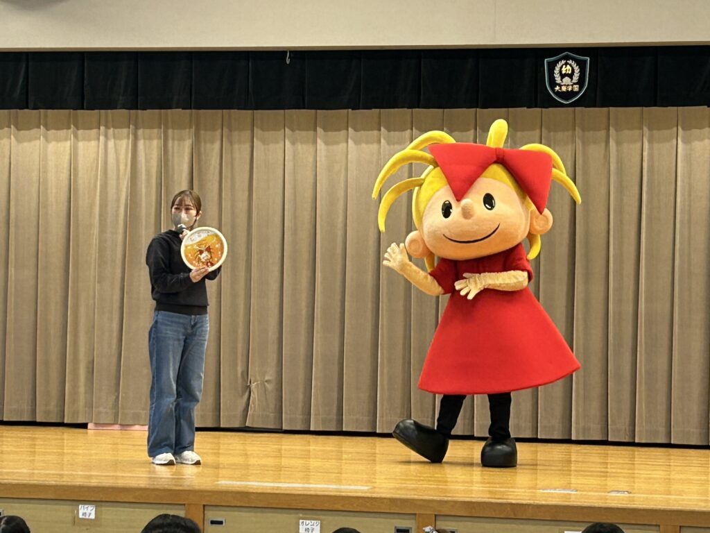 こんにちは!今日は札幌市豊平区にある『つきさむ幼稚園』にお邪魔してきました。 まずは紙芝居でリボンナポリンの歴史や、リボンナポリンのオレンジ色はお野菜のパプリカの色素が使われていることを学びましたよ。 ついにリボンちゃん