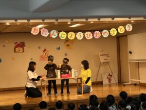 今回のリボンちゃん幼稚園・保育園訪問は、新琴似育英幼稚園のお誕生日会へお邪魔しました。