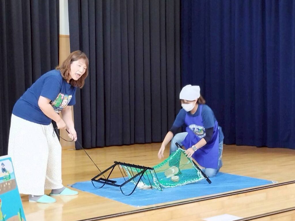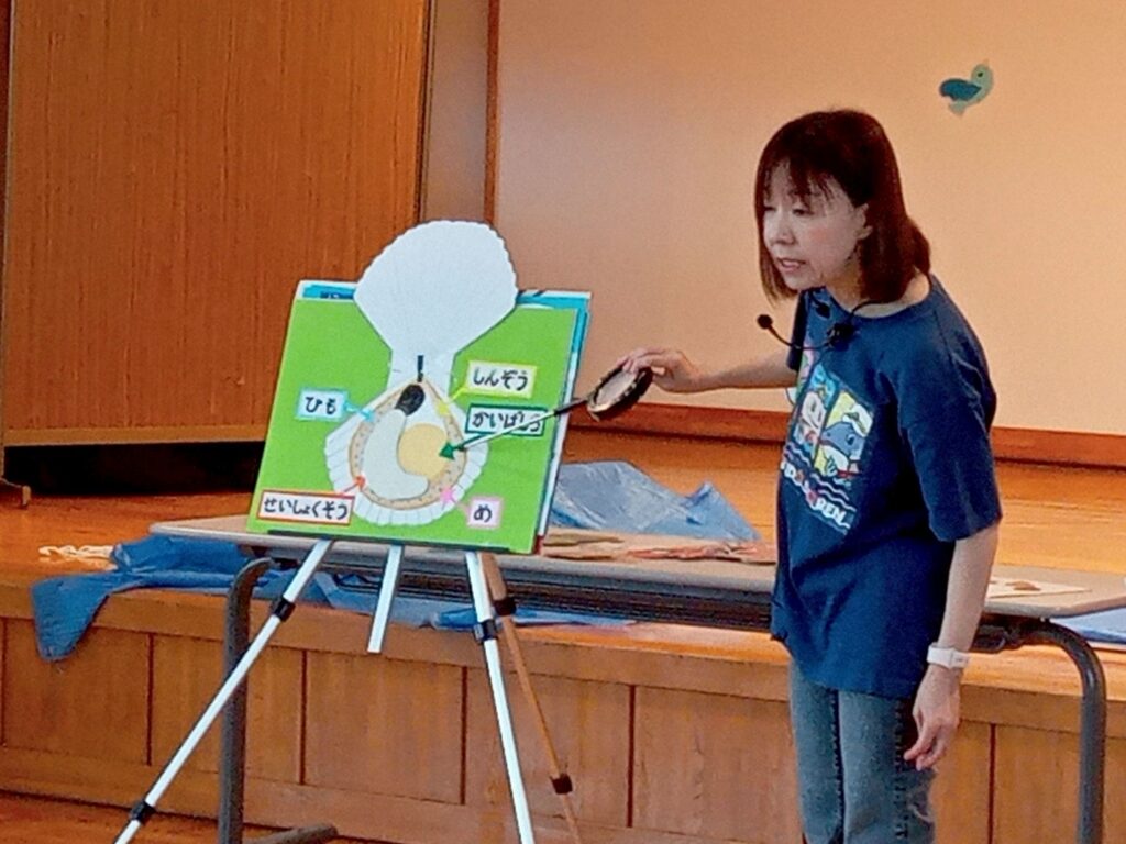 全国生産量の約8割が北海道産であるほたてについてぜひ皆様に知っていただきたく、今回お邪魔したのは新琴似育英幼稚園です。 年中さんのお友達と一緒にお勉強していきました。 子供たちはエミナスタッフのゆみ先生と一緒に、紙芝居を