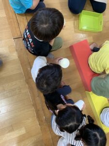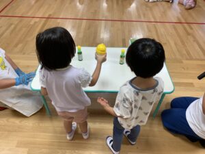 しゅわしゅわダンスのポイントは、炭酸の泡を再現して、手のひらをグーパーさせるところなのですが、みんな、とっても素敵に出来ていました!
