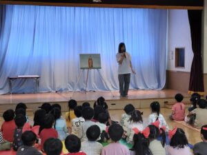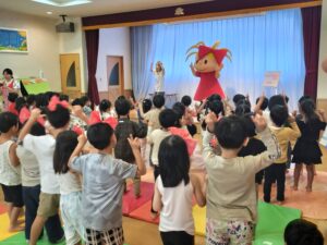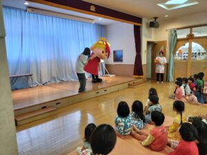 そして、リボンナポリンに描かれている赤いリボンを付けた女の子が北白石こども園に遊びに来てくれました!