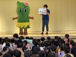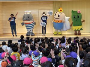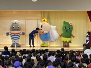 身体をつくったり、元気になれるよう整えてくれるパワーをもっているホタテリオくんや、疲れた体を元気にしてくれたりお肌をピカピカにするパワーをもっているシャッケ船長もクイズを出しながら紹介していきました。