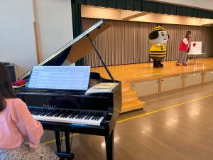 ピアノと歌が得意なちっすー。『はらぺこあおむし』のパネルシアターでは綺麗で素敵な歌声と演奏を披露してくれました。
