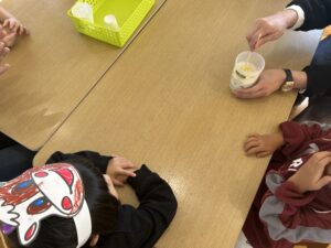 10回混ぜたらお隣のお友達へ回し、全員で混ぜていきました。ホール内は数をかぞえるかわいい声があふれていましたよ。