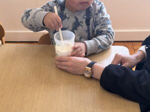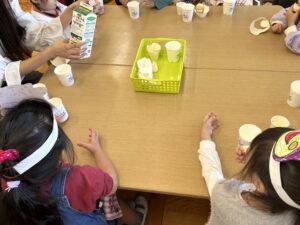 今回は新琴似育英幼稚園の年少さんと一緒に、ミルクキッズ教室を開催しました。