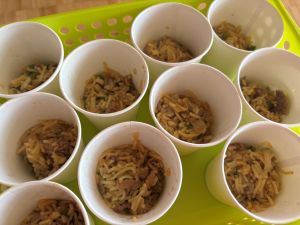 野菜嫌いな子が多いのでと少し心配されていた先生方でしたが、ほとんどの子が完食!! 先生方もいろんな