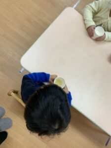 乳アレルギーのお子さまには、蜂蜜レモン水を試飲してもらいました。