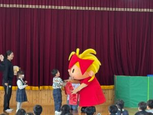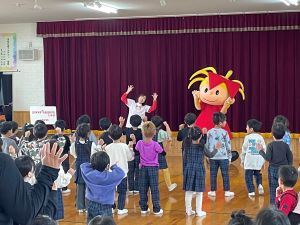 園児さんはリボンちゃんと一緒に「しゅわしゅわしゅわわ」の曲に合わせてダンスを踊ったり、代表の園児さんに