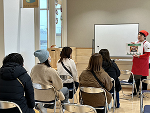 同じ頃ホールのお隣では、おうちの方にもジンギスカンの歴史や羊肉の栄養などについてお話させていただきました。