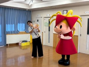 リボンちゃんは小学1年生なのでみんなよりちょっぴりお姉さんですが、みんなと同じようにダンスを踊ることが大好き!そこで一緒に「しゅわしゅわしゅわわ」の曲に合わせてダンスを踊りました。
