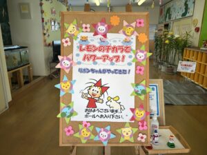 リボンちゃんも楽しくなって踊っていたらちょっと疲れてしまった様子・・・なので少しお休みしてもらい、その間しおり先生が体を動かした時にお勧めな飲み物のお話をしてくれました。