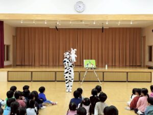 そして紙芝居を見ながら、牛さんや牛乳についてお勉強していきました。