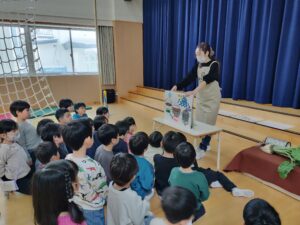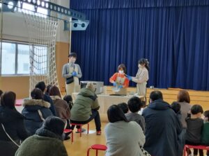 連日の大雪となった札幌。今回は、南区にある【もなみ幼稚園】に訪問させていただきました。悪天候のなか、たくさんのお友達と保護者の方に集まっていただき、ありがとうございます!