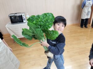 てん菜がどのくらいの大きいのか実際にレプリカを使って見て触れてらいました。『わぁ!大きい!』『重たいね!』『葉っぱがすごい!』『砂糖の匂いがする!?』などの感想を聞かせてくれましたよ。