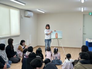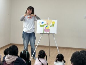 話が終わり、今度はエミナスタッフのともみ先生がパネルを見せながらあるジュースのお話をしてくれました。