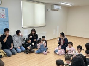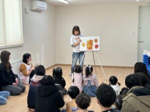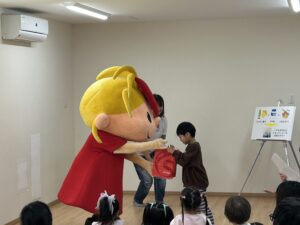 そしてみんなにも一人ずつお渡しするプレゼントも用意してきたので、代表のお友達に受け取ってもらいました。