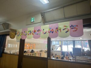園内には、先日行われたお店屋さんごっこの可愛らしい看板が各部屋のドアの上に残されており、当日の楽しかった様子が伝わってきました。