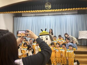 一生懸命ながらも、ちょっぴりごまかし気味(?)のみちゅバチの手遊びにも、子どもたちはあたたかいまなざしで応援してくれました。