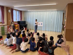 子供たちはリボンちゃんが来ることを楽しみにして、ダンスもたくさん練習してくれたとのことで、ポーズもしっかり決まりとても上手に踊ってくれました!