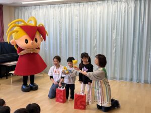 そして一緒にダンスを踊ってくれたお礼に、みんなへプレゼントを持ってきたので代表のお友達にお渡ししました。
