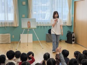 集まってくれた子供たちの前に登場したエミナスタッフのゆみ先生が、ある飲み物のパネルを見せながら名前を知っているか尋ねると・・・