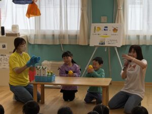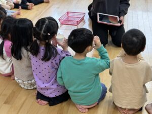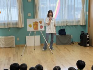ダンスを踊り疲れたリボンちゃんは喉が渇いてしまった様子なので、少し休憩してもらいその間ゆみ先生がみんなにぜひ飲んでもらいたい飲み物のお話をしてくれました。